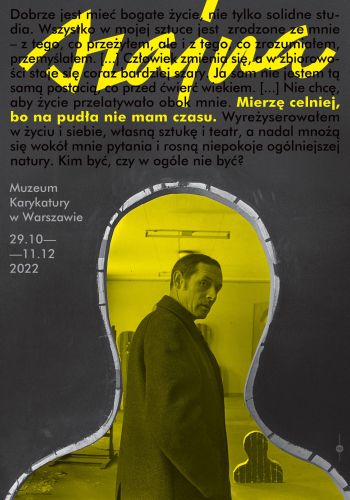Wystawa „Szajna: Mierzę celniej, bo na pudła nie mam czasu” z jednej strony wprowadzi w biografię Artysty, z drugiej pokaże mniej znane prace z jego archiwum, w tym mało znaną twórczość satyryczną – choćby zaskakujący cykl Gęby – maski. Satyra i groteska to język artystyczny Józefa Szajny – dlatego Muzeum Karykatury proponuje spotkanie z jego sztuką. Na przykładzie figur, asamblaży, rysunków, fotografii teatralnych wystawa przybliża Szajnowski świat wyobraźni. Część wystawy poświęcona jest teatralnym pracom Artysty. Działania teatralne Szajny cechowała silna ekspresja wizualna i nowatorskie rozwiązania formalne. „Uprawiam teatr, w którym słowo staje się obrazem, a obraz słowem” – mówił. Najważniejsze przedstawiania Szajny przypomną zdjęcia mistrzów teatralnej fotografii, Wojciecha Plewińskiego i Stefana Okołowicza. Człowiek był zawsze w centrum zainteresowań Józefa Szajny. Jego twórczość, naznaczona doświadczeniem Auschwitz, to ciągłe próby zrozumienia ludzkiej natury. Reminiscencje wojenne, wyobrażenia śmietnika cywilizacji i dialog(gr. dialogos = rozmowa), 1. podstawowa forma wypowiedzi w d... More z tradycją artystyczną definiowały jego estetykę: „Wszystko w mojej sztuce jest zrodzone ze mnie – mówił – z tego, co przeżyłem, ale i z tego, co zrozumiałem, przemyślałem. […] Człowiek zmienia się, a w zbiorowości staje się coraz bardziej szary. Ja sam nie jestem tą samą postacią, co przed ćwierć wiekiem. […] Nie chcę, aby życie przelatywało obok mnie. Mierzę celniej, bo na pudła nie mam czasu. Wyreżyserowałem w życiu i siebie, własną sztukę i teatr […]”. Działania artystyczne Szajny skupione były na ciele i materii. Poprzez swoją spotęgowaną zmysłowość odwoływały się do intelektu i wrażliwości odbiorców. Wystawa prezentuje Szajnowskie wariacje na temat postaci ludzkiej i twarzy. Antyestetyka Szajny służyła przekazywaniu treści natury etycznej. Poprzez swoją twórczość zadawał pytania o człowieczeństwo, ostrzegał przed zawsze możliwą katastrofą wojny, oskarżał totalitaryzmy, atakował współczesny konsumpcjonizm i karierowiczostwo. Sztuka ta jest aktualna także dzisiaj, bo wciąż – jak mówił artysta – „człowiek zaniedbuje siebie”…