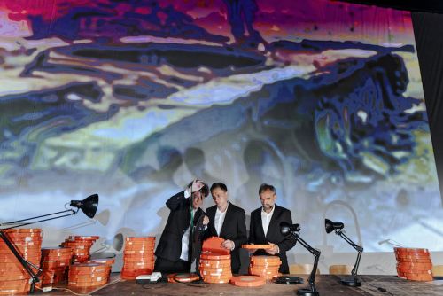 Scenografia to liczne pomarańczowe kasety z taśmą filmową, które mogą symbolizować rzeszę historii ludzi, których w lutowy poranek zastała zbrojna napaść. Każda z nich jest odrębnym końcem świata, utratą poczucia bezpieczeństwa, ale łączy je jedno słowo – wojna. W tych okolicznościach usłyszymy relacje z pierwszych dni agresji, kiedy w miejscu życia artystów zabrakło podstawowych środków spożywczych, ale też zobaczymy wideorelację z patrolu aktora, który zdecydował się na wstąpienie do sił zbrojnych. Jest coś okrutnie przerażającego w sielskich obrazach pól skąpanych w letnim słońcu, gdzie zza zakrętu polnej, niemal sielankowej, drogi może czaić się wrogo nastawiony oprawca.