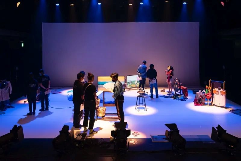 Zwiedzanie sceny przed spektaklem I Say Mingalaba, You Say Goodbye, 2022. Reżyseria Jarunun Phantachat. Zdjęcie: Haruka Oka. Uprzejmości Kioto Experiment