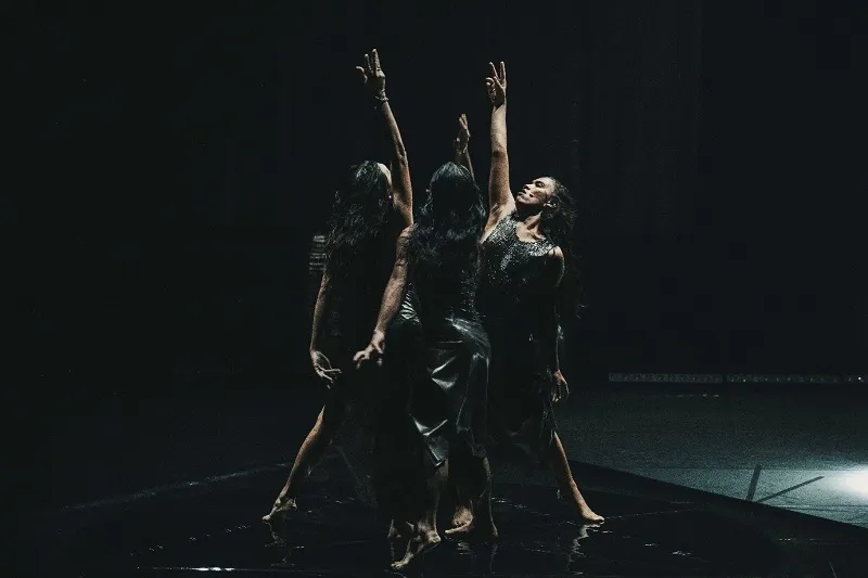 W miarę rozwoju spektaklu, wokół i na trójkątnej podłodze pośrodku sceny rozpoczynają się rytualne śpiewy i działania. Po pierwsze, potężne struny głosowe Serafina zajmują centralne miejsce w przejmującej grze światła. Później dołączają do nich dwaj pozostali wykonawcy, Lukresia Quismundo i Bunny Cadag. To w ich pobitych, a czasem złamanych głosach słyszymy (neo)kolonialne szczątki. Jest to równie widoczne, gdy przesuwają swoje ciała po przestrzeni. Perłowa oprawa migocze, a dym otacza przestrzeń, jakby próbując odtworzyć obrazy z filmu sprzed kilku chwil.