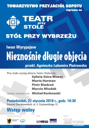 Dzisiaj, 22 stycznia 2018 o godzinie 18.30 w Dworku Sierakowskich w Sopocie odbędzie się trzynasta odsłona projektu Teatr przy Stole/Stół przy Wybrzeżu, którego drugi sezon… Dowiedz się więcej »Trzynasta odsłona projektu Teatr przy Stole/Stół przy Wybrzeżu