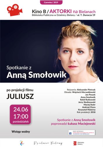 Biblioteka na Bielanach w Warszawie, ul. Duracza 19, zaprasza 24 VI 2019 o godz. 17.00 na film JULIUSZ w reżyserii Aleksandra Pietrzaka. Po projekcji spotkanie… Dowiedz się więcej »AKTORKI NA BIELANACH: ANNA SMOŁOWIK