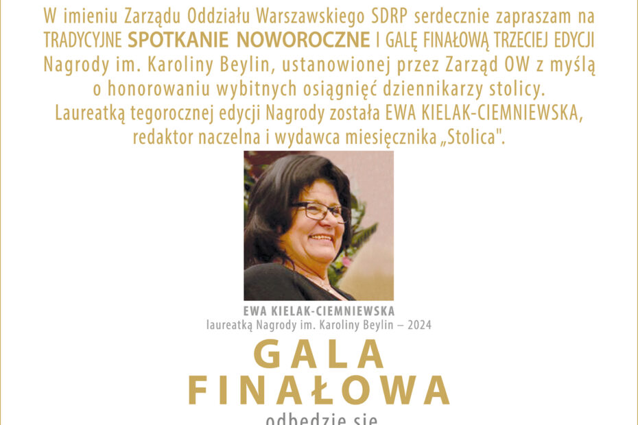 W imieniu Zarządu Oddziału Warszawskiego SDRP serdecznie zapraszam na tradycyjne spotkanie noworoczne i galę finałową trzeciej edycji Nagrody im. Karoliny Beylin, ustanowionej przez Zarząd OW… Dowiedz się więcej »Spotkanie noworoczne/ Gala Beylin